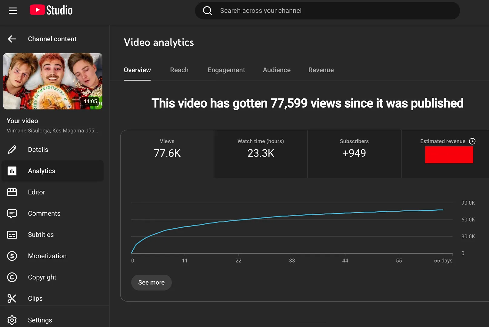 Video oli algselt meie sõpradega tehtud ühisel kanalil "Sisumaja", kus video kogus 77 600 vaatamist, kuid kuna grupp läks lahku, siis võtsime enda tehtud video kaasa ning postitasime Kozipi kanalile, kus ta kogub vaatamisi edasi.